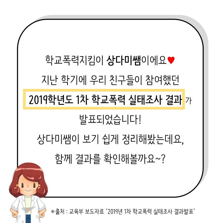 초중고생 1.2% "학교폭력 피해 경험"…스토킹·성폭력 늘어 | 연합 ... from img2.yna.co.kr 2020년도 학교폭력 실태조사가 14일 오전 9시 부터 오는 다음달 16일 18시까지 진행되는 가운데 스마트폰 등 모바일 기기로는 참여할 수 없게 돼 실태조사 참여 절차는 학생인증(학생확인, 인증번호 확인, 설문참여) 및 설문진행(학교폭력 예방교육, 설문응답설문제출, 학교폭력예방·신고안내)로. 2017년 사이버폭력 실태조사 보고서4에 의하면 사이버폭력 가해 및 피해 경험율은 26.0%로 인터넷 이용자 4명중 1명은 최근 6개월 이내 사이버폭력 가해 또는 피해를 경험한 것으로 나타났다. 18위 펜트하우스 배우 학교폭력 댓글수(24) 추천수125. 하지만 익명성을 보장하는 조사 환경이 마련되지 않는 한 내년 실태조사 역시 큰 차이가 없을 거란 지적입니다. 아동‧청소년 10명 중 3명, 학교폭력 피해 경험 있다 인포그래픽 #schoolviolence / #infographic ⓒ 비주얼다이브 무단 복사·전재·재배포 금지. 학교폭력 실태조사 안했는데 어쩌지 안돼잖아 교원개발능력인가 뭔가랑 학교폭력 실태조사 하고 그림그릴거라고오오 흫 학교에서 학교폭력실태조사중이다 난 한다 학교폭력 실태조사를 운동갔다오면 머머 동의서랑 학교폭력 실태조사 하라구좀해주세여 김미형 상명대 국어문화원장. 욕설과 모욕적인 말이 27.3%로 가장 많았고 폭행이 18.0%, 협박이나. infographic '통계로 보는 학교폭력 실태조사' 에 대한 인포그래픽.